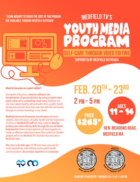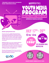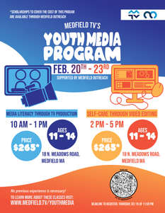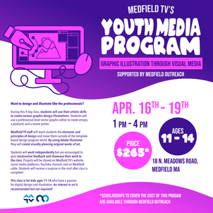 Medfield TV's Youth Media Program is a 4-day educational class for middle school-age students. As one of the instructors, I created a multiple-course curriculum centered around digital media. To promote these classes, I worked on video and graphic advertisements.