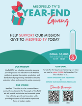I developed an end-of-the-year fundraising campaign to help raise money to support the expansion of Medfield TV's educational programs. The campaign included articles from former/current interns, producers, and volunteers I mentored.